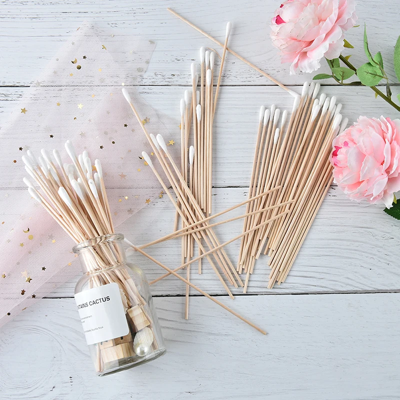 Premium Make Up Tools 100Pcs/pack 15cm Medical Swab Wood Handle Cotton Applicator Extra Long Sturdy Cotton