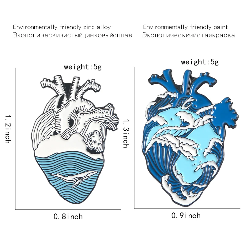 New GDHY Human Heart brooch Blue Ocean Sea Wave Whale namel Pins Lapel pins Anatomical Heart Badge Medi | GDHY Heart Series Brooch BE BRAVE Organ Heart Red Blood heart white Cat Hug Wave Whale Heart Enamel Pins Lapel Badge Doctor Gift