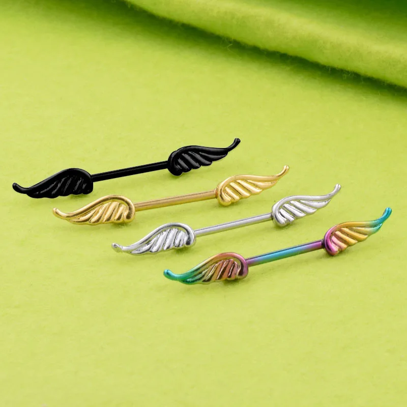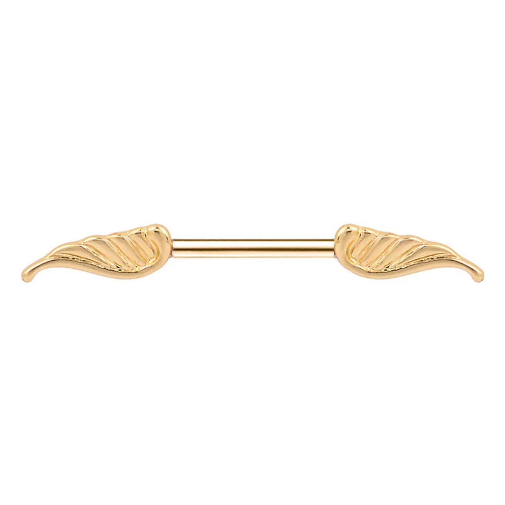 Luxury High Fashion Women Nipple Ring Double Wing Feather Medical Steel Straight Rod Nipples Shield Rings